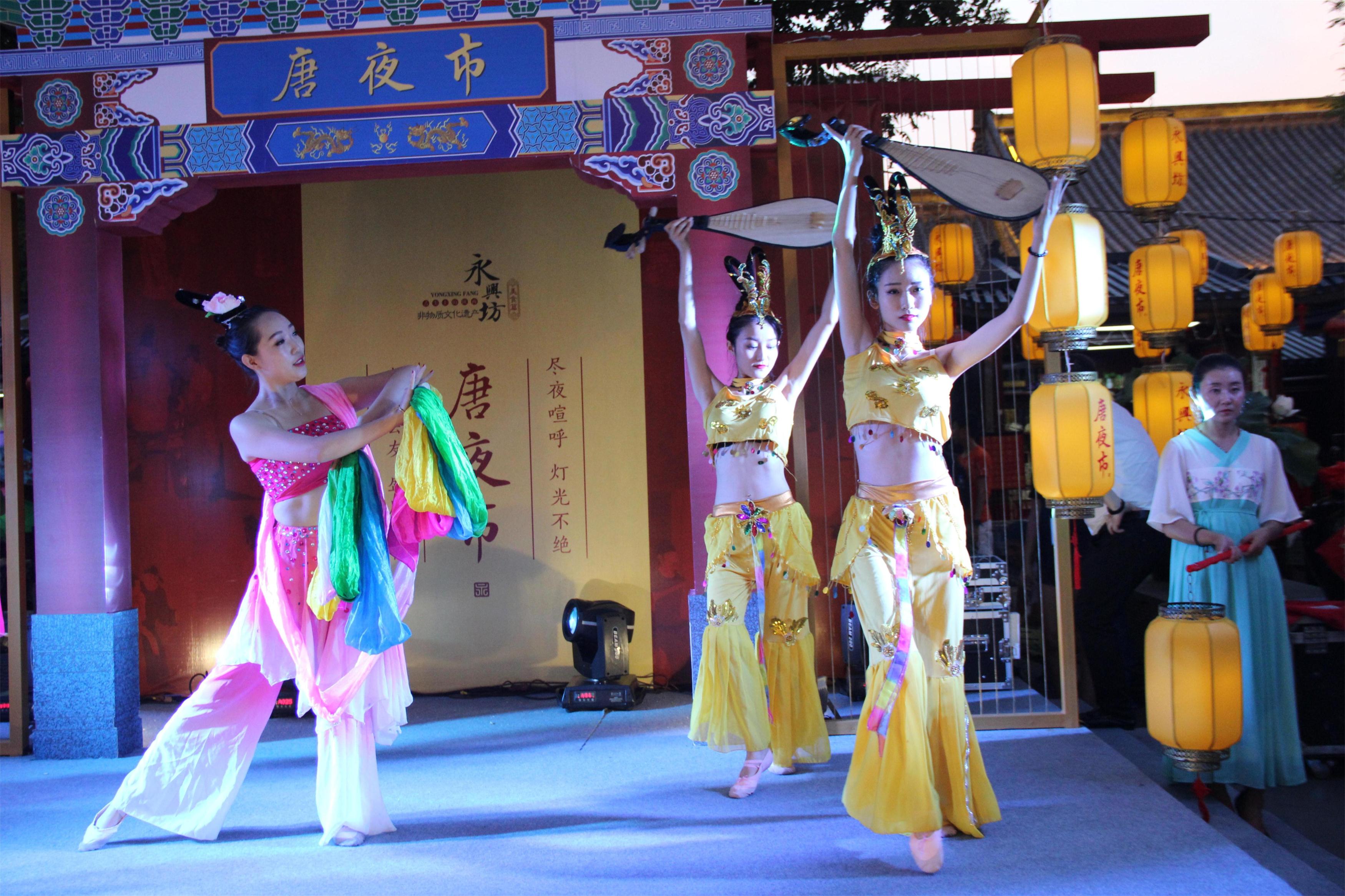 2017年永兴坊积极打造传统音乐聚集区,传承国粹,挖掘精髓,发扬传统,以尊故融新的理念将陕西传统文化艺术再造升级。盛唐名舞翩翩而来,贯穿古今;秦腔、碗碗腔、华县皮影、陕北说书等国家级非物质文化遗产艺术上演永兴坊·唐夜市。传统和民俗交融,历史与文化碰撞,永兴坊里盛唐夜市,尽夜喧呼。